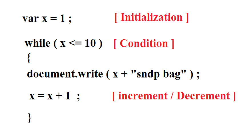 - দ্বিতীয়ত While নামে একটি কীওয়ার্ড লেখা হয় while loop ব্যবহারের জন্য এবং প্রথম বন্ধনীর ভিতরে কন্ডিশান দেওয়া হয় লুপটি কত বার চলবে ।
