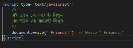 নিচে জাভাস্ক্রিপ্টে একাধিক লাইন বিশিষ্ট কমেন্টের একটি উধাহরণ দেখুন।