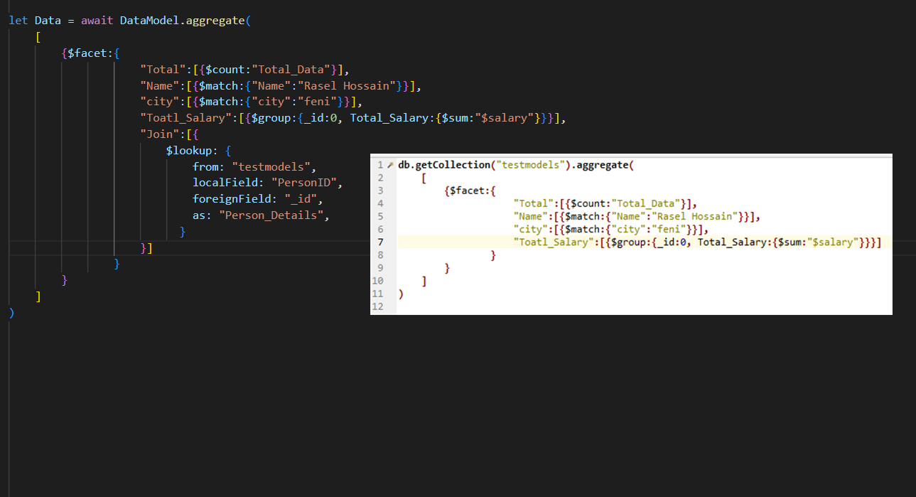 $facet অপেরাটর। aggregate এর বিতরে আবার অনেক পাইপলাইন নিয়ে কাজ করা।