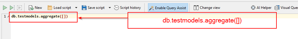 Aggregate([]) মেথড studio 3t code। শুধু মাত্র aggregate([]) খালি মেথড কল করতে হবে
