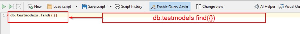 find({}) মেথড studio 3t code। শুধু মাত্র find({}) খালি মেথড কল করতে হবে।