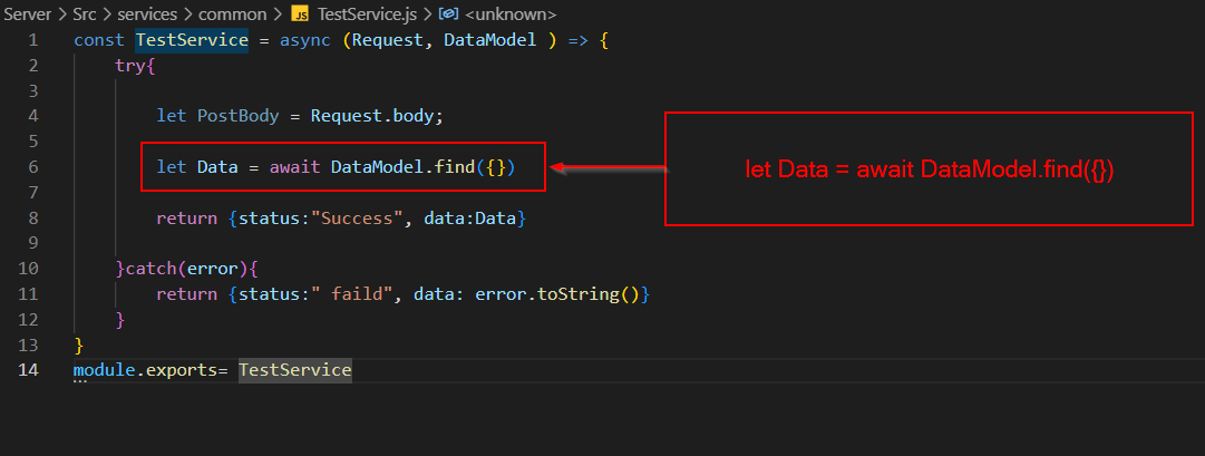 find({}) মেথড server side code এখানে Data ভ্যারিয়েবলে সকল ডাটা json জেসন আকারে ছলে আসবে।