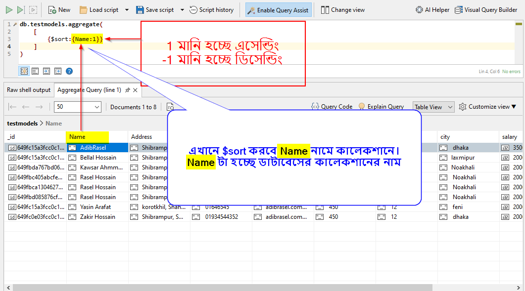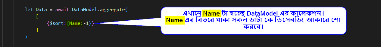 aggregate([]) মেথড দিয়ে এসেন্ডিং ডেসেন্ডিং আকারে ডাটা বাহির করা।