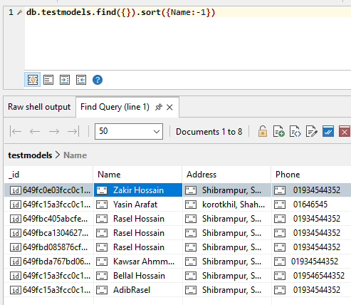 find({}) মেথড দিয়ে এসেন্ডিং ডেসেন্ডিং আকারে ডাটা বাহির করা।